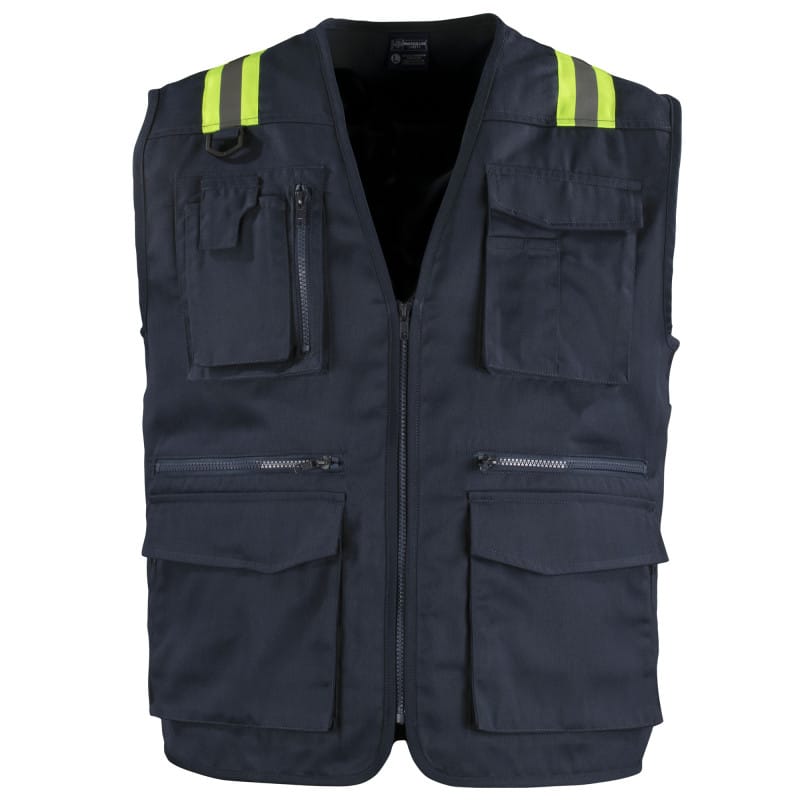 Chaleco geólogo con cinta reflectante, día y noche, este producto está pensado para uso en faenas o terreno. Diseñado para el uso y transporte de variados implementos y herramientas de trabajo. Posee tela resistente y liviana lo que hace muy práctico y funcional que puede ser usado en entornos exigentes. Posee una cinta reflectante día y noche de 5cm en el delantero y espalda, esto permite una mayor visibilidad nocturna, aumentando la seguridad del trabajador. Tiene cierre en el centro delantero a la vista desmontable. En la espalda posee un practico bolsillo de mapero. Además, posee en el delantero, múltiples bolsillos de diferentes formas y tamaños para distintos usos.