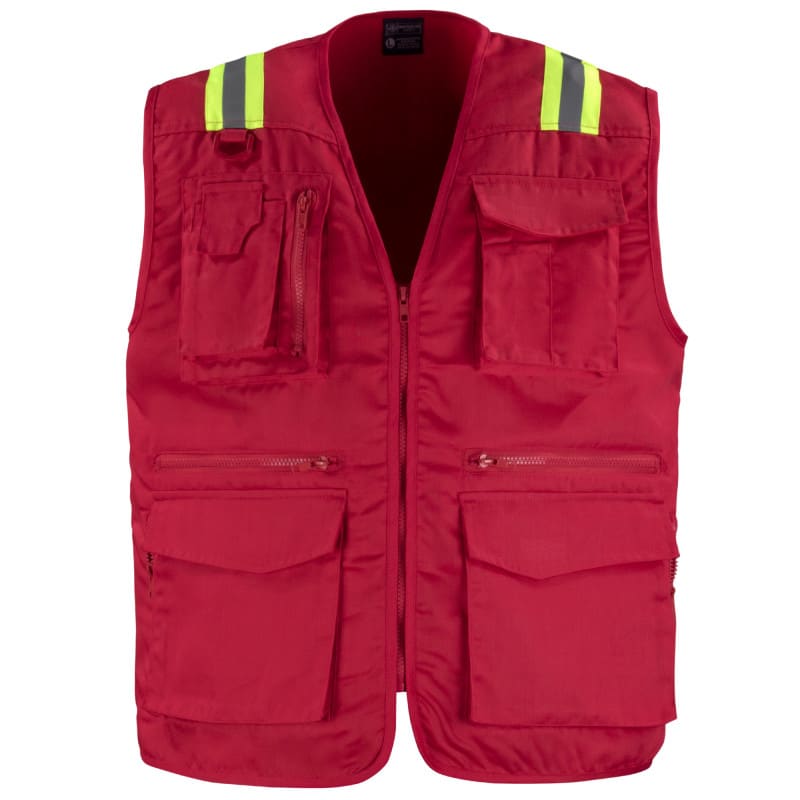 CHALECO GEOLOGO GABARDINA DUAL HI VIS CON CINTA DIA Y NOCHE