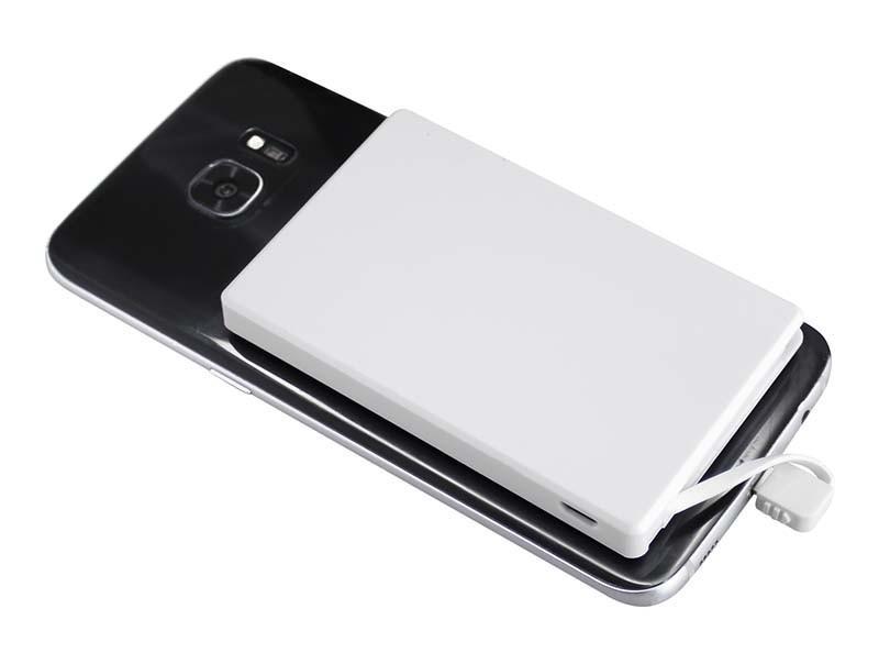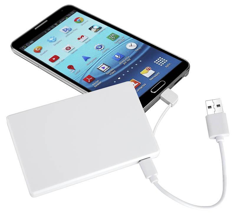 Ahora puedes llevar tu cargador adosado a tu teléfono a todos lados!! con el nuevo Cargador Power Bank con 35 ventosas que se adhieren firmemente a tu celular o tablet, con conexión directa de cable cargador dual (incorporado) para iPhone / Android micro USB. Capacidad 2500mAh. Incluye cable cargador USB/Micro USB. Batería recargable incorporada. Amplia superficie de impresión. Presentación en estuche de PVC translúcido reforzado.