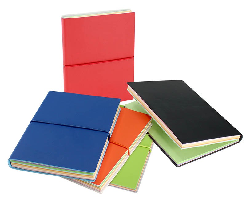 Libretas Corporativas “High Class” con cubierta de PU color. Interior 144 hojas lisas 80g/m2 con 9 colores diferentes.