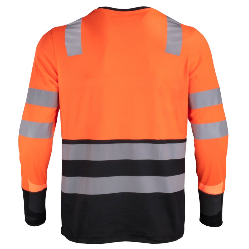 Polera alta visibilidad bicolor manga larga diseñada con tecnología “híbrida” nos entrega una fusión perfecta para el cuidado de tu piel gracias a su composición de algodón en el interior de la prenda y poliéster en el exterior, permitiendo a tu cuerpo liberar la transpiración sin sentir la sensación de humedad y combinando elementos de alta visibilidad es la prenda perfecta para desarrollar trabajos en entornos viales, ya que posee cintas reflectivas termoselladas de 5 cm de ancho. Esta prenda cuenta con filtro UPF entregando mayor protección contra los rayos ultravioleta.