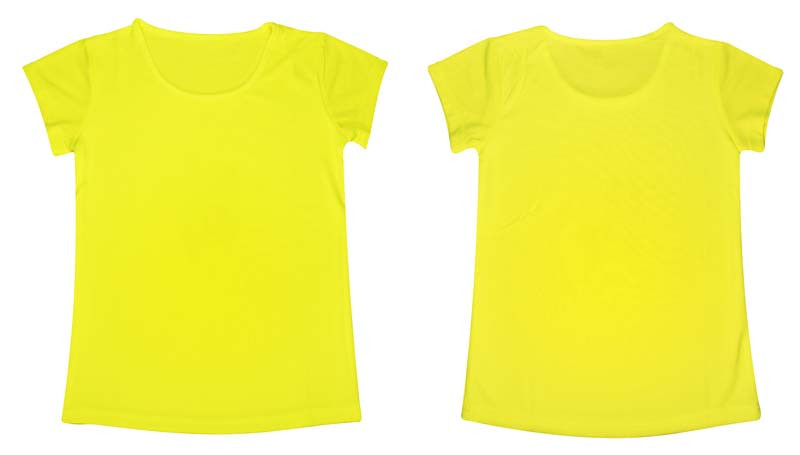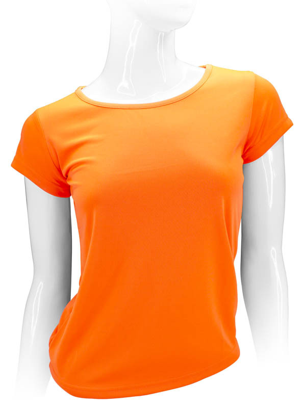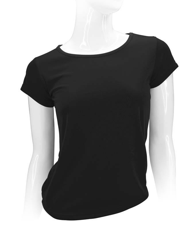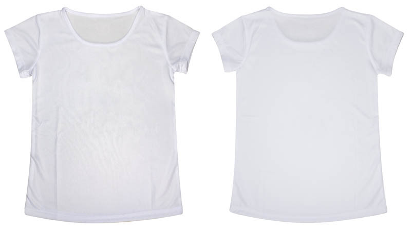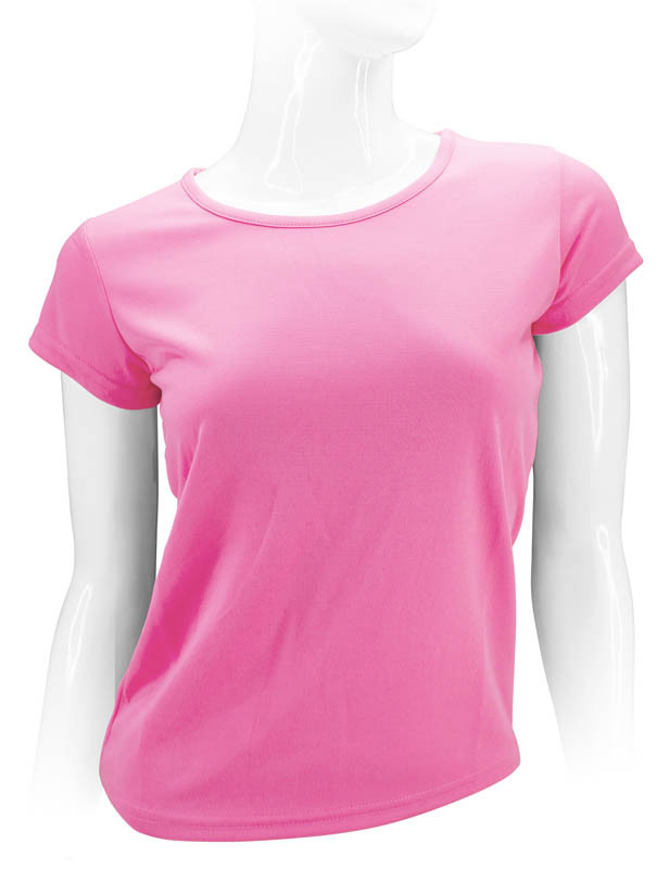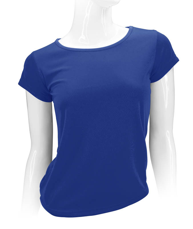 Polera 100% POLIÉSTER de 150gr/m2, para MUJER. Cuello redondo, manga corta. Presentación individual en bolsa de polipropileno transparente.
